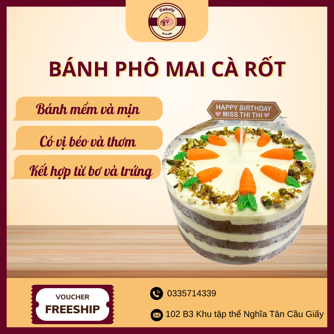 Bánh cà rốt phô với cốt bánh mềm mịn, ngọt ngào với hương vị của trứng, bơ hòa cùng vị thanh ngọt hấp dẫn của cà rốt kèm một chút hương quế. Phần kem creamcheese béo ngậy, ngọt ngào, mát lạnh dễ dàng tan ngay đầu lưỡi. Từng miếng bánh thơm mềm, hài hòa hương vị khi thưởng thức cùng thức uống yêu thích trở nên tuyệt vời không gì sánh bằng.