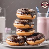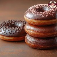Thường trên mặt bánh còn được rắc thêm hạt cốm màu, vụn socola hoặc hạt hạnh nhân giòn giòn, vừa đẹp mắt vừa tăng hương vị. Cắn một miếng là cảm nhận ngay sự hòa quyện giữa bánh mềm và socola béo ngậy — rất dễ gây “nghiện”, nhất là khi ăn kèm một ly cà phê hoặc sữa nóng ☕🍩.